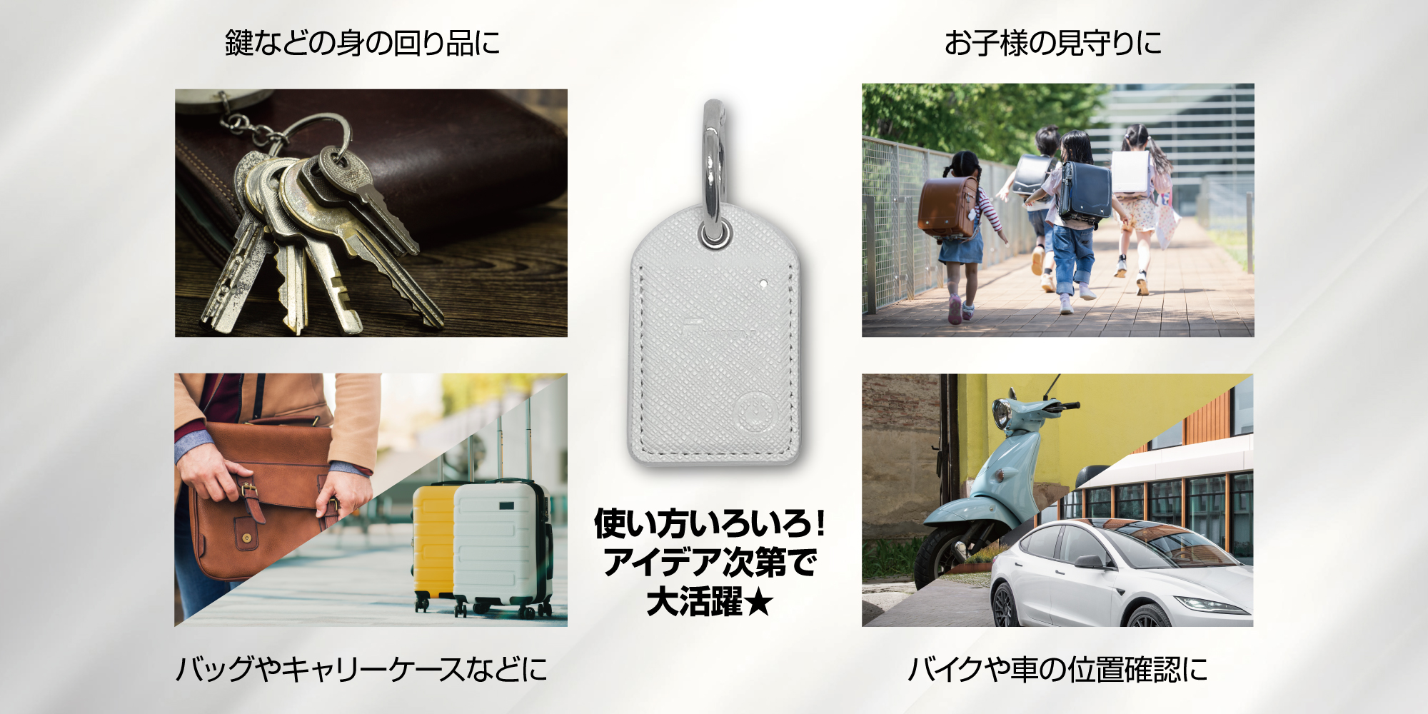 (鍵、カバン、自転車、ペット首輪向け)