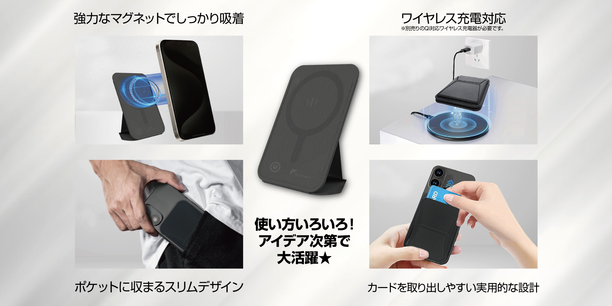 ・マグネットで対応デバイスにピタッと吸着