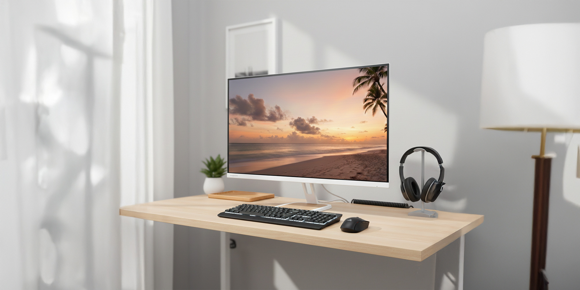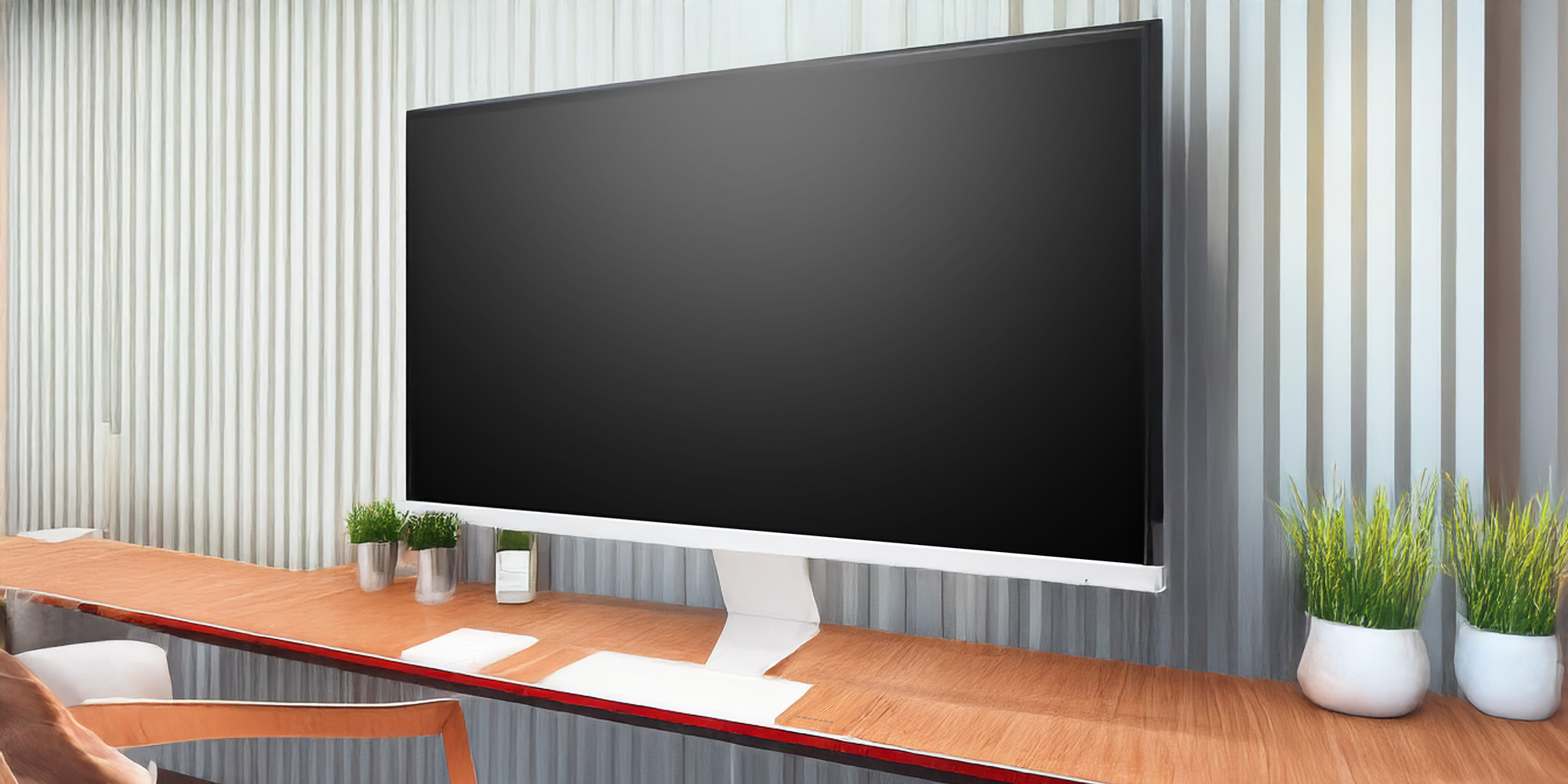 液晶パネル周りのフレームを極限まで狭めたゼロフレームデザインと、最薄部わずか約8mmという超薄型設計により、前から見ても横から見てもスタイリッシュですっきりとした印象のモニターに仕上がりました。余計なものが視界に入り込まないので、その場にいるような迫力のある映像体験が可能になります。